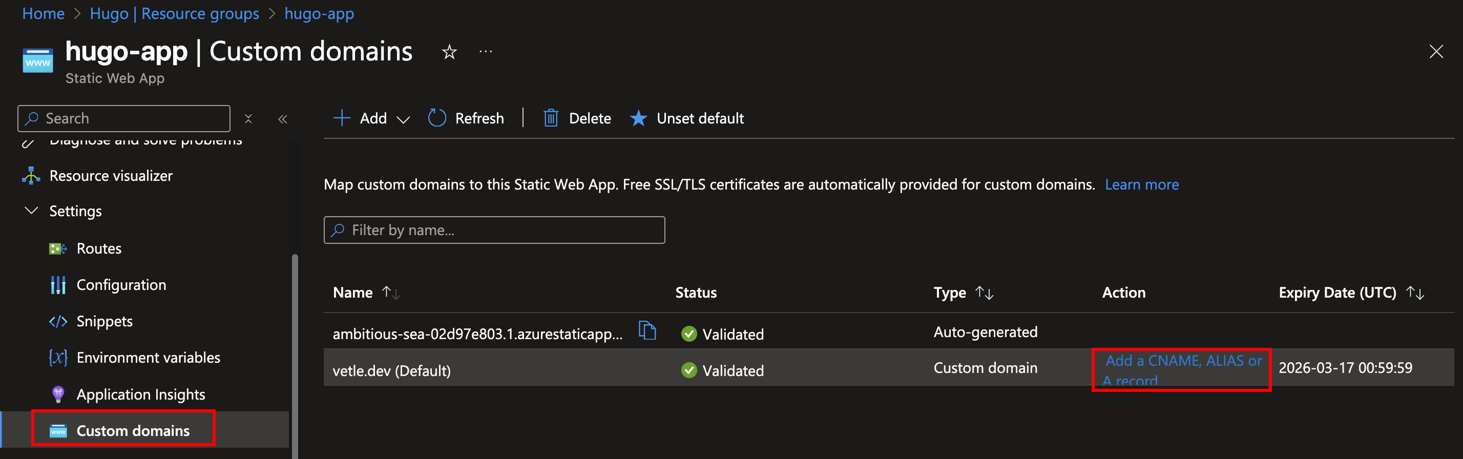 to your domain name. - Commit, push, and merge these changes via a pull request.