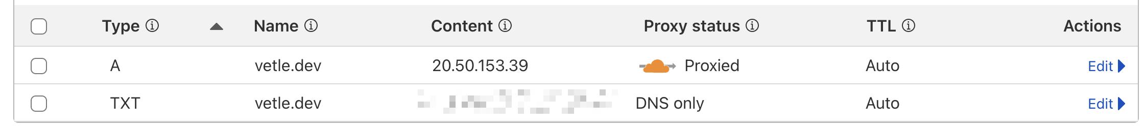record to your domain’s DNS settings at your registrar. - This is how the DNS configuration should look like at your registrar. This example uses Cloudflare: