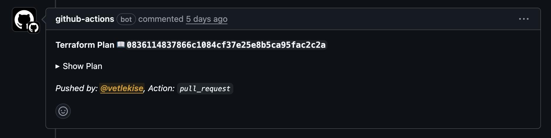 in a PR comment. - Review the plan. If it’s correct, merge the pull request to deploy the resources.