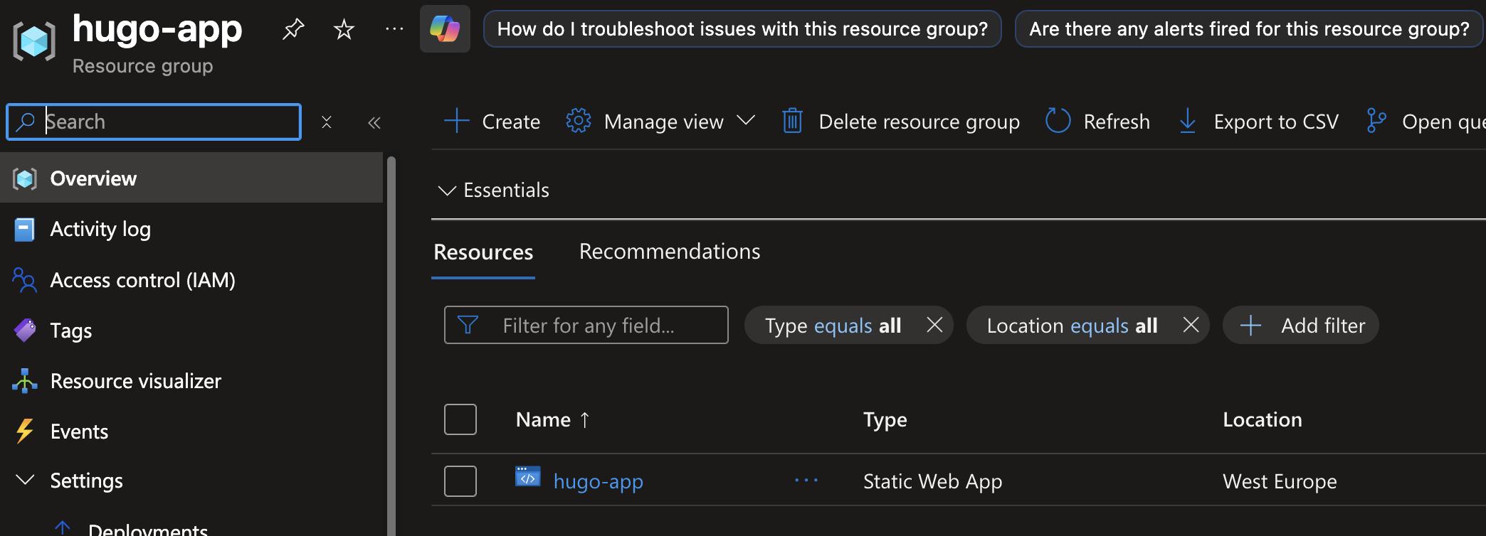 This very site is built with Hugo! In this guide, I’ll walk you through deploying a Hugo website to an Azure Static Web App using Terraform, which, while more involved than alternatives like GitHub Pages, provides some more practical experience with IaC.